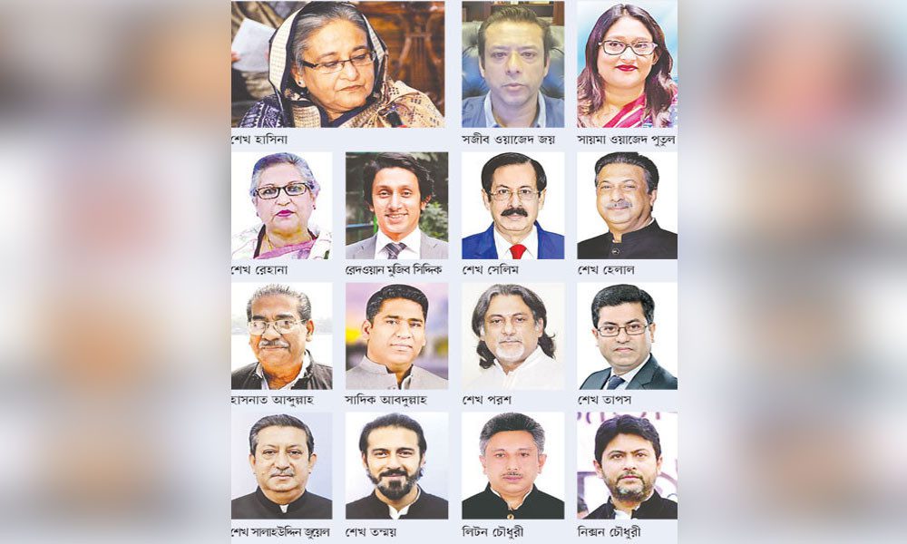 বিগত চার সরকারের নথি পর্যালোচনা করে দেখা গেছে, ২০০৯ থেকে ২০২৪ সালের মাঝামাঝি সময় পর্যন্ত সরকারের আটজন মন্ত্রী ও প্রতিমন্ত্রী ছিলেন শেখ হাসিনার স্বজনরা। সিটি করপোরেশনের মেয়র তিনজন, সহযোগী সংগঠনের চেয়ারম্যান ও সদস্যসচিবের দায়িত্ব পালন করেন আরো তিনজন।