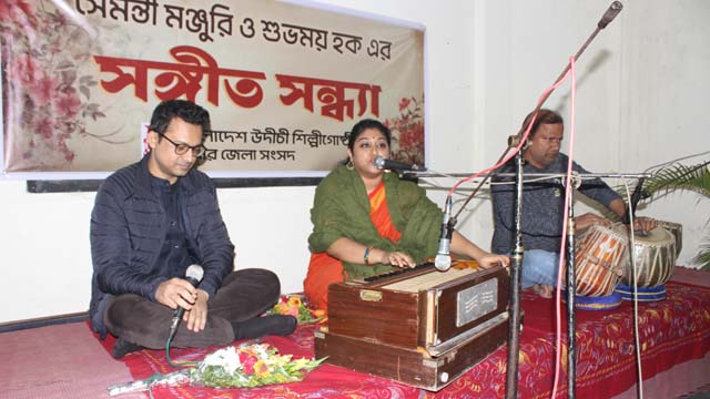 বাংলাদেশ উদীচী শিল্পী গোষ্ঠী যশোর জেলা সংসদে গতকাল সন্ধ্যায় হয়ে গেল সঙ্গীত সন্ধ্যা। শিল্পী ছিলেন উদীচীর উপদেষ্টা বাংলাদেশ শিল্পকলা একাডেমীর সাবেক পরিচালক বিশিষ্ট সঙ্গীত শিল্পী সোহরাব উদ্দীনের এর মেয়ে সেমন্তী মঞ্জরী ও জামাতা শুভময় হক। তাদের সুললিত কণ্ঠে গাওয়া গানে মিলনায়তনে উপস্থিত দশক শ্রোতা বিমোহিত হন।