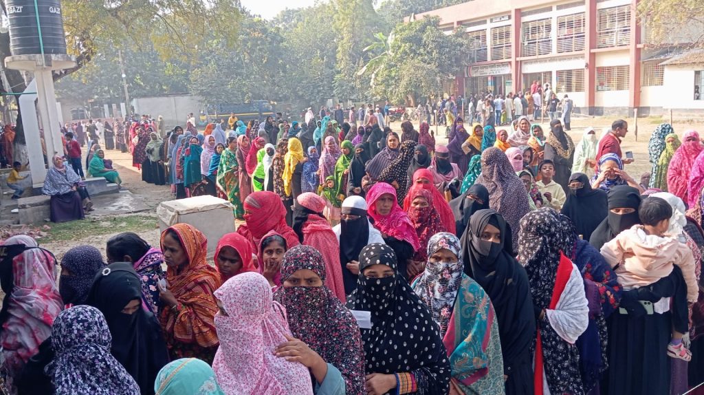 প্রথম দুই ঘণ্টায় শান্তিপূর্ণ ভোটগ্রহণ, নারী ভোটারের উপস্থিতি বেশি