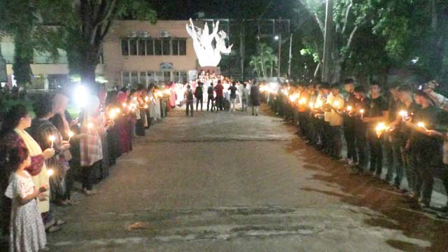 কলকাতার আরজি কর হাসপাতালের চিকিৎসক মৌমিতা দেবনাথকে ধর্ষণ ও হত্যার প্রতিবাদে যশোরে সমাবেশ ও মোমবাতি প্রজ্বালন করেছে সাধারণ শিক্ষার্থীরা। শনিবার (১৭ আগস্ট) সন্ধ্যা সাড়ে ৭টায় এমএম কলেজের চেতনায় চিরঞ্জীব ভাস্কর্যের পাদদেশে এ কর্মসূচি পালন করা হয়।