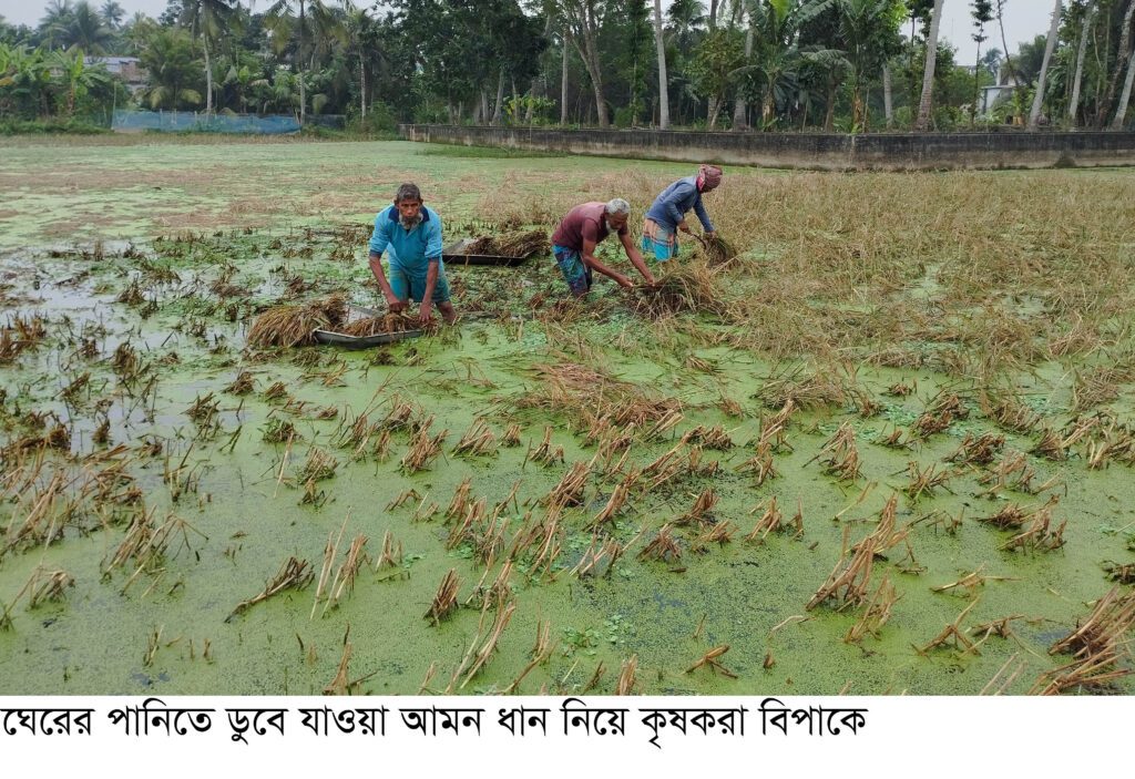কেশবপুরে কৃষকের পাকা আমন ধান মাছের ঘেরের পানিতে তলিয়ে যাওয়ার অভিযোগ উঠেছে। পাকা ধান তলিয়ে যাওয়ায় বিপাকে রয়েছেন কৃষকরা। পানির মধ্য থেকে ধান কেটে উচু স্থানে উঠাতে কৃষকের গুনতে হচ্ছে বাড়তি টাকা। ২৭ বিল বাঁচাও আন্দোলন কমিটির পক্ষ থেকে দাবি করা হয়েছে এলাকার সকল মাছের ঘেরে একসঙ্গে সেচ শুরু হলে উপজেলার পাঁজিয়া ও সুফলাকাটি ইউনিয়নের নিচু এলাকার মানুষের বাড়িতে পানি উঠে আসার সম্ভাবনা রয়েছে।