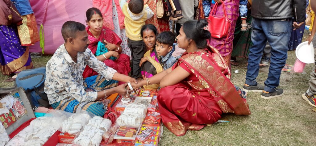 কেশবপুর থেকে আসা খেলনা বিক্রেতা কিষ্ট বিশ্বাস বলেন, বুধবার সন্ধ্যায় মেলায় এসে প্রসাধনী নিয়ে বসার জায়গা পাইনি। একদিন আগেই সব জায়গা দখল হয়ে গেছে।