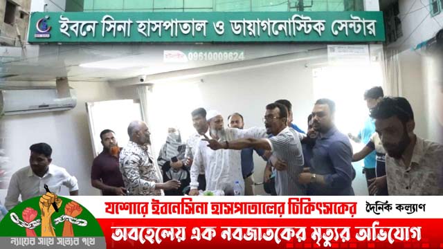 যশোরে ইবনেসিনা হাসপাতালের চিকিৎসকের অবহেলায় এক নবজাতকের মৃত্যুর অভিযোগ উঠেছে। মঙ্গলবার দুপুরে ওই ভুক্তভোগী পরিবার ও এলাকাবাসী দায়িত্বরত চিকিৎসকের শাস্তির দাবিতে হাসপাতালের সামনে বিক্ষোভ করেছে। এসময় হাসপাতাল কর্তৃপক্ষের সাথে ভুক্তভোগী পরিবার বাকবিতাণ্ডতায় জড়িয়ে পড়লে গোলযোগের সৃষ্টি হয়। পরে পুলিশ এসে পরিস্থিতি নিয়ন্ত্রণে আনে। এ ঘটনায় নবজাতকের মা তোবা বেগমও মৃত্যুর সাথে পাঞ্জা লড়ছেন খুলনার একটি বেসরকারি হাসপাতালে।
