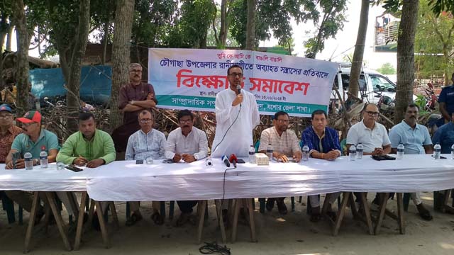 সাম্প্রদায়িক সম্প্রীতি সুরক্ষা পরিষদ যশোরের আহ্বায়ক মিজানুর রহমানের সভাপতিত্বে পাঁচ শতাধিক নারী পুরুষ বিক্ষোভ সমাবেশে অংশগ্রহণ করেন।