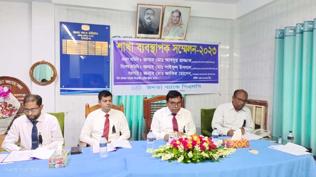জনতা ব্যাংক পিএলসি যশোর এরিয়া শাখা ব্যবস্থাপক সম্মেলন-২০২৩ অনুষ্ঠিত হয়েছে। বুধবার এরিয়ার ডিজিএম মো. জাকির হোসেনের সভাপতিত্বে যশোর জেসটাওয়ার এরিয়া অফিসে এই সম্মেলন অনুষ্ঠিত হয়। অনুষ্ঠানে প্রধান অতিথি ছিলেন ব্যাংকের খুলনা বিভাগীয় কার্যালয়ের জিএম মো. আব্দুর রাজ্জাক।