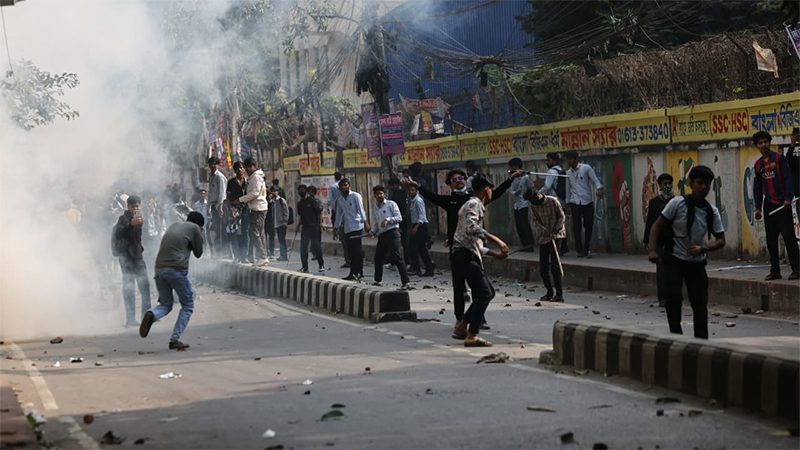 নিউমার্কেট থানার ভারপ্রাপ্ত কর্মকর্তা (ওসি) মোহাম্মদ আইয়ুব বলেন, ল্যাবএইড হাসপাতালের সামনে দিয়ে যাওয়ার সময় ঢাকা কলেজের একটি বাসে আইডিয়াল কলেজের শিক্ষার্থীরা ইটপাটকেল ছোড়ে বলে অভিযোগ উঠে। এর জের ধরেই সংঘর্ষ শুরু হয়।