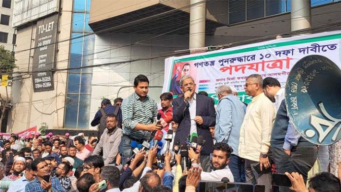 শনিবার বেলা ২টায় রাজধানীর বাড্ডায় সুবাস্তু মার্কেটের সামনের সড়কে পদযাত্রা কর্মসূচির আগে দেওয়া বক্তব্যে তিনি এই কথা বলেন। গণতন্ত্র পুনরুদ্ধার ও ১০ দফার দাবিতে রাজধানীতে চার দিনের পদযাত্রার আজ প্রথম দিনের কর্মসূচিটি দুপুর আড়াইটায় শুরু হয়েছে। মালিবাগের আবুল হোটেল পর্যন্ত গিয়ে শেষ হওয়ার কথা রয়েছে।