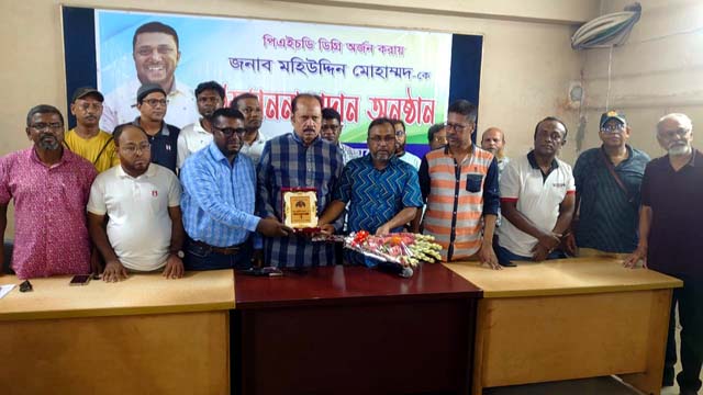 সাংবাদিক ইউনিয়ন যশোরের সদস্য মহিউদ্দীন মোহাম্মদ পিএইচডি অর্জন করায় সংগঠনের পক্ষ থেকে সম্মাননা দেওয়া হয়েছে। মঙ্গলবার বেলা ১১ টায় প্রেসক্লাব যশোর মিলনায়তনে এ সম্মাননা প্রদান করা হয়। সংগঠনের সভাপতি আকরামুজ্জামানের সভাপতিত্বে অনুষ্ঠানে প্রধান অতিথি হিসেবে বক্তব্য রাখেন প্রেসক্লাব যশোরের সভাপতি জাহিদ হাসান টুকুন।