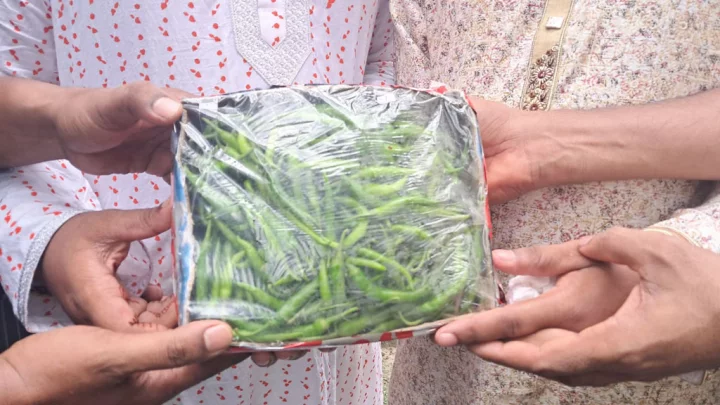 বিয়ের অনুষ্ঠানে বৌভাতে গিয়ে মানুষ কত কিছু উপহার দেন। উপহারের তালিকায় সাধারণত থাকে শোপিস, শাড়ি, অলংকার, নগদ টাকা কিংবা বই। তাইবলে কাঁচামরিচ ভাবতেই পারবে না কেউ। এমনই এক মজার কাণ্ড ঘটেছে। যা নিয়ে সামাজিক যোগাযোগমাধ্যমে বেশ হাস্যরস তৈরি হয়।