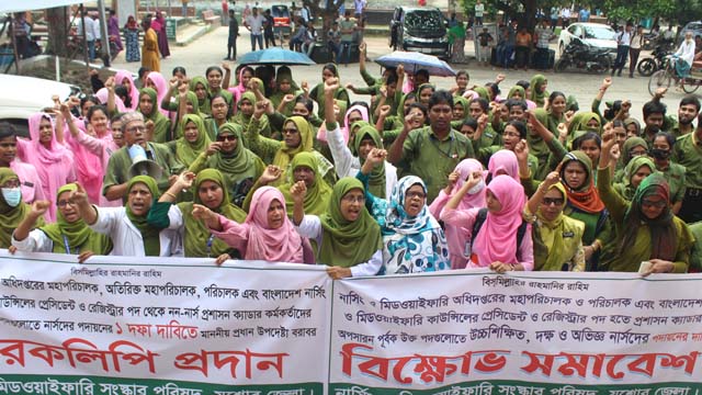 বিক্ষোভ মিছিল ও জেলা প্রশাসক বরাবর স্মারকলিপি দিয়েছে যশোরের নার্সিং ও মিডওয়াইফারি সংস্কর পরিষদ। বাংলাদেশ সরকারি কর্মকমিশনের (পিএসসি) চাকরিতে নার্সিং ক্যাডার ব্যবস্থা চালু করার দাবি জানিয়ে এ কর্মসূচি পালন করেন তারা। একই সাথে নার্সিং ও মিডওয়াইফারি অধিদপ্তরের মহাপরিচালক, পরিচালক এবং বাংলাদেশ নার্সিং ও মিডওয়াইফারি কাউন্সিলের প্রেসিডেন্ট ও রেজিস্টার পদ থেকে প্রশাসন ক্যাডার কর্মকর্তাদের অপসারণ করার দাবি জানিয়েছেন।