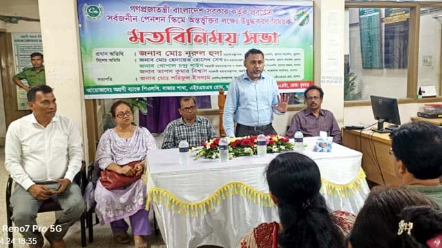 যশোর শহরের এইচএমএম রোডস্থ অগ্রণী ব্যাংক বাজার শাখায় বুধবার অনুষ্ঠিত হয়েছে সর্বজনীন পেনশন স্কিমে অন্তর্ভুক্তির লক্ষ্যে উদ্বুদ্ধকরণ বিষয়ক মতবিনিময় সভা।