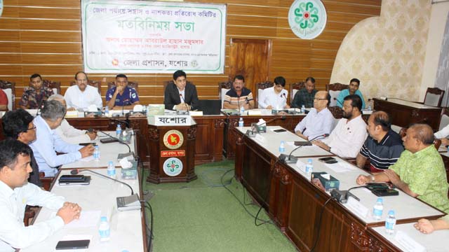 যশোরে জেলা পর্যায়ে সন্ত্রাস ও নাশকতা প্রতিরোধ কমিটির মতবিনিময় সভা অনুষ্ঠিত হয়েছে। বৃহস্পতিবার দুপুরে জেলা প্রশাসকের কার্যালয়ে এ সভা অনুষ্ঠিত হয়। জেলা প্রশাসক মোহাম্মদ আবরাউল হাছান মজুমদারের সভাপতিত্বে সভায় বক্তারা বলেন, কোটা সংস্কার আন্দোলনের নামে একটি পক্ষ দেশব্যাপী সহিংসতা সৃষ্টির অপচেষ্টা চালিয়ে যাচ্ছে। স্বাধীনতা বিরোধী সেই অপশক্তিকে রুখতে সকলকেই সোচ্চার হতে হবে। বিশেষ করে সামাজিক যোগাযোগ মাধ্যম ফেসবুক, ইউটিউবসহ অন্য মাধ্যমে গুজব রুখতে বিশেষ ব্যবস্থা নিতে হবে। একই সাথে সরকারি বেসরকারি কলেজ ও বিশ্ববিদ্যালয়ের আশাপাশে মেসে কারা অবস্থান করছে তাদের নাম পরিচয় সনাক্ত করে সহিংসতাকারীদের খুঁজে বের করতে হবে।