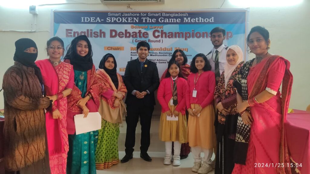 অনুষ্ঠানে বিচারকমন্ডলী হিসেবে উপস্থিত ছিলেন আইডিয়া স্পোকেনের কোর্ডিনেটর নাবিলা সুলতানা এবং ফ্যাসিলিটেটর সোমা খান, জেসমিন আক্তার, শাহরিয়ার খান প্রান্ত ও মিতালি বালা। প্রসঙ্গত, ‘স্মার্ট যশোর ফর স্মার্ট বাংলাদেশ’ প্রকল্পের আওতায় যশোরের স্বনামধন্য দশটি শিক্ষাপ্রতিষ্ঠানের মোট এক হাজার শিক্ষার্থীকে আইডিয়া স্পোকেন-দ্য গেইম মেথড টিম বিনামূল্যে ইএসএল এর মধ্যে দিয়ে ইংরেজি শেখাচ্ছে ৬ মাসব্যাপি। খেলতে খেলতে ইংরেজি শেখানোর এই প্রকল্পের সমাপ্তি হতে চলেছে আগামী ফেব্রুয়ারিতে। সেই লক্ষ্যে শিক্ষার্থীদের চূড়ান্ত ডিবেট টিম বাছাইয়ের উদ্দেশ্যে ২৫ জানুয়ারি থেকে আন্তঃস্কুল বিতর্ক প্রতিযোগিতা শুরু হলো।
