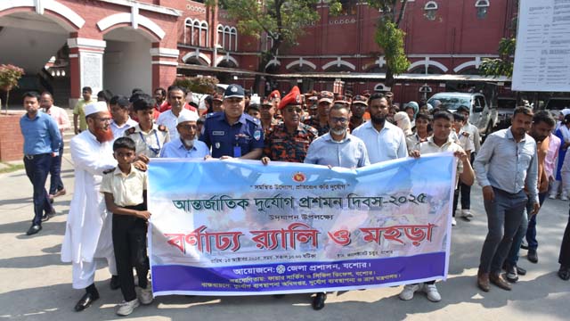 ‘আন্তর্জাতিক দুর্যোগ প্রশমন দিবস-২০২৫’ উপলক্ষে যশোরে র্যালি, আলোচনা সভা ও ফায়ার সার্ভিস সিভিল ডিফেন্সের মহড়া অনুষ্ঠিত হয়েছে। সোমবার সকালে জেলা প্রশাসন ও ফায়ার সার্ভিস সিভিল ডিফেন্সের যৌথ উদ্যোগে এ কর্মসূচি অনুষ্ঠিত হয়।