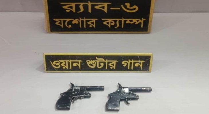 র্যাবের পরিদর্শক হাওলাদার রফিকুল ইসলাম জানিয়েছেন, বুধবার রাত একটার দিকে তাদের কাছে খবর আসে যশোর শহরতলীর খোলাডাঙ্গা এলাকায় অবৈধ অস্ত্র নিয়ে দু’জন অবস্থান করছে। এরই ভিত্তিতে তাৎক্ষনিক সেখানে অভিযান চালায় র্যাবের একটি বিশেষ টহলদল। এসময় র্যাবের উপস্থিতি টের পেয়ে দু’যুবক দুটি ব্যাগ ফেলে পালিয়ে যায়। পরে ওই ব্যাগ থেকে র্যাব সদস্যরা দুটি ওয়ান স্যুটারগান উদ্ধার করে।