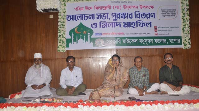 ধর্মীয় ভাবগাম্ভীর্যের মধ্যদিয়ে যশোর সরকারি মাইকেল মধুসূদন (এমএম) কলেজে পালিত হয়েছে ঈদে মিলাদুন্নবী (সা.)। সোমবার সকালে কলেজের হল রুমে আলোচনা, দোয়া ও পুরস্কার বিতরণ অনুষ্ঠানের আয়োজন করা হয়।