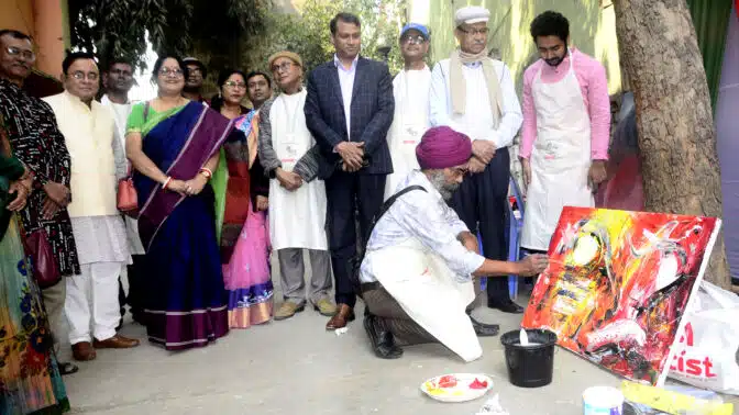 একটি ছবির সামনে কয়েক মুহূর্ত থামতে হলো। সাদা ক্যানভাসে লাল-কালো রঙের আভার মতো ফুটে উঠেছে কয়েকজন মানুষের প্রতিচ্ছবি। কারো চিৎকাররত মুখে মুষ্টিবদ্ধ হাত, কারো বা হাতে প্লেকার্ড। তাতে লেখা রাষ্ট্রাষা বাংলা চাই। ‘তোমার আমার ঠিকানা, পদ্মা মেঘনা যমুনা। সেখান থেকে ঘুরে দাঁড়ালে চোখে পড়ে আরেকটি ক্যানভাস। সেখানে ফুটে উঠেছে প্রকৃতির বেদনা ও চিৎকার। জাতীয় শিশু কিশোর ও যুব কল্যাণ সংগঠন চাঁদের হাট যশোর চত্বরে ছড়িয়েছে এমন অর্থবহ নানা চিত্র। রং-তুলির মুক্ত আঁচড়ে ২১ শিল্পী তুলে এনেছেন ৫২ ভাষা আন্দোলনের নানান দৃশ্যপট। শুধু ভাষা আন্দোলন নয়; ক্যানভাসে উঠে এসেছে প্রাণ প্রকৃতিসহ মানুষের সংগ্রাম ও তার জীবনযাপনের বিচিত্র নানান দৃশ্যপট। অমর শহিদ দিবস উপলক্ষে চাঁদের হাটের ৫ দিন ব্যাপি কর্মসূচির প্রথম দিনে দিনব্যাপী এই আর্ট ক্যাম্প উদ্বোধন করেন জেলা প্রশাসক তমিজুল ইসলাম খান। তিনি বলেন, চাঁদের হাটের এই আর্ট ক্যাম্পের মধ্য দিয়ে ভাষা আন্দোলনের নানা দৃশ্যপট উঠে আসবে। এই আয়োজন অন্যদের অনুপ্রেরণা যোগাবে বলে আমি মনে করি।