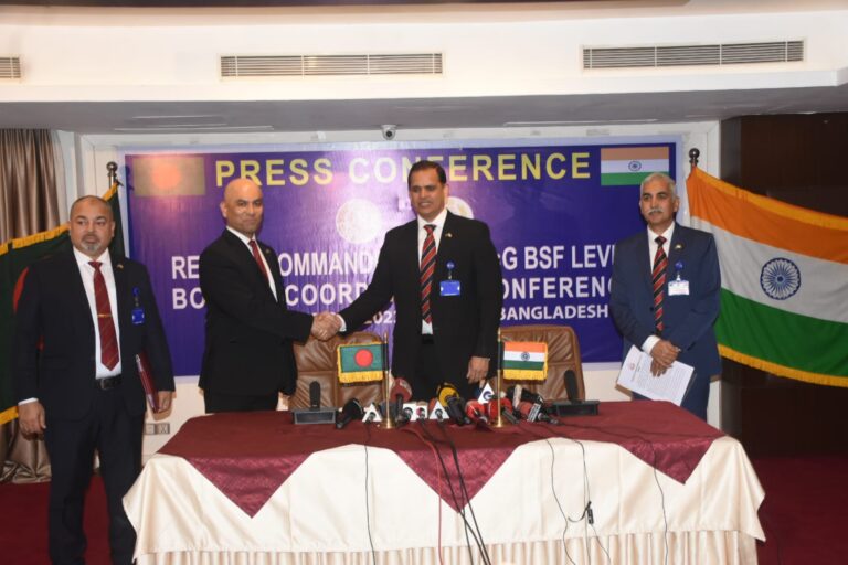 বর্ডার গার্ড বাংলাদেশ (বিজিবি) ও ভারতের বর্ডার সিকিউরিটি ফোর্সের (বিএসএফ) মধ্যে চার দিনব্যাপী সীমান্ত সম্মেলন শেষ হয়েছে। আজ মঙ্গলবার দুপুরে যশোর শহরের একটি পাঁচতারকা হোটেলে বিজিবির রিজিয়ন কমান্ডারস (রংপুর ও যশোর রিজিয়ন) এবং বিএসএফের ফ্রন্টিয়ার ইন্সপেক্টর জেনারেলসের (সাউথ বেঙ্গল, নর্থ বেঙ্গল ও গৌহাটি ফ্রন্টিয়ার) মধ্যে সম্মেলনটি শেষ হয়। এবারের সম্মেলনে সীমান্ত হত্যা নিরসন, অবৈধ অনুপ্রবেশ, মাদক পাচার, মানব পাচার রোধ, স্বর্ণ ও অন্ত্র চোরাচালন রোধসহ বিভিন্ন ধরণের আন্তঃ সীমান্ত অপরাধ দমন, সীমান্তরে ১৫০ গজের মধ্যে বিভিন্ন উন্নয়নমূলক কাজ এবং পারস্পরিক সম্প্রীতি ও আস্থা বৃদ্ধির বিষয়ে আলোচনা হয়। চারদিনব্যাপী সম্মেলন শেষে আজ যৌথ আলোচনার দলির স্বাক্ষরের মধ্যে দিয়ে অত্যন্ত সৌহার্য্যপূর্ণভাবে সম্মেলনটি শেষ হয়েছে। এর আগে গত ২ সেপ্টেম্বর এই সম্মেলন শুরু হয়। বিএসএফের সাত সদস্যের ভারতীয় প্রতিনিধিদলের নেতৃত্ব দেন সাউথ বেঙ্গল ফ্রন্টিয়ারের আইজি শ্রী আয়্যুষ মানি তিওয়ারি। অন্যদিকে ২১ সদস্যের বিজিবির নেতৃত্ব দিচ্ছেন রংপুর রিজিয়ন কমান্ডার ব্রিগেডিয়ার জেনারেল মোহাম্মদ মোরশেদ আলম।