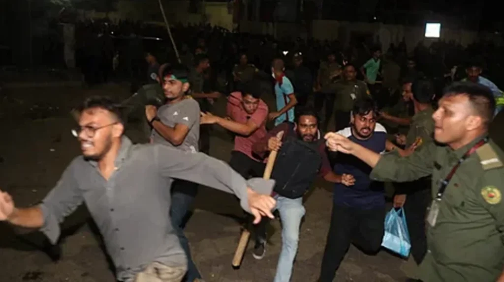 সচিবালয়ে আনসারের একদল সদস্য বৈষম্যবিরোধী ছাত্র আন্দোলনের সমন্বয়ক ও অন্তর্বর্তীকালীন সরকারের উপদেষ্টা নাহিদ ইসলাম, সমন্বয়ক সারজিস আলম ও হাসনাত আবদুল্লাহসহ অনেককে আটকে রেখেছেন— এমন খবর ছড়িয়ে পড়ার পর ঢাকা বিশ্ববিদ্যালয়ের বিভিন্ন হল থেকে টিএসসির রাজু ভাস্কর্যে জড়ো হন শিক্ষার্থীরা। আনসার সদস্যদের প্রতিহত করতে তাঁরা মিছিল নিয়ে সচিবালয় এলাকায় যান। এ সময় দুই পক্ষের মধ্যে পাল্টাপাল্টি ধাওয়া ও সংঘর্ষের ঘটনা ঘটে। পুলিশ পরিস্থিতি নিয়ন্ত্রণে কয়েকটি সাউন্ড গ্রেনেড ছোড়ে।