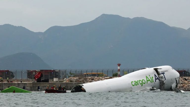 হংকং আন্তর্জাতিক বিমানবন্দরে অবতরণের সময় নিয়ন্ত্রণ হারিয়ে রানওয়ে থেকে ছিটকে সাগরে পড়ে গেছে একটি কার্গো বিমান। দুর্ঘটনায় বিমানবন্দরের দুই গ্রাউন্ড স্টাফ নিহত হয়েছেন। এছাড়া বিমানে থাকা চার ক্রু সদস্যকে জীবিত উদ্ধার করা হয়েছে। বিবিসির প্রতিবেদনে এ তথ্য জানানো হয়।