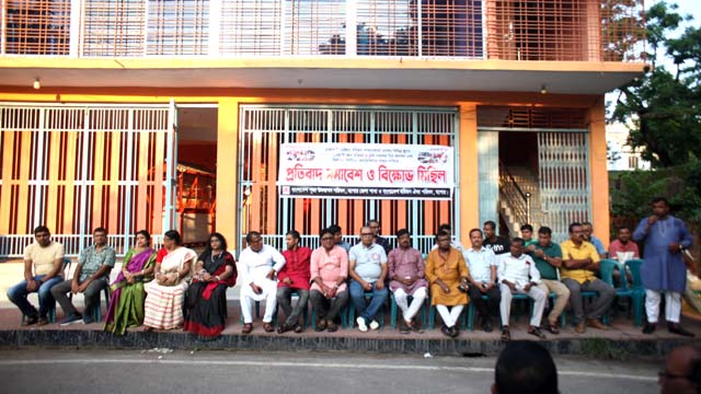 প্রতিবাদ সমাবেশে প্রধান অতিথির বক্তব্য রাখেন যশোর জেলা পূজা উদযাপন পরিষদের সভাপতি দীপঙ্কর দাস রতন।