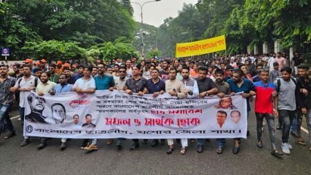 নিজস্ব প্রতিবেদক দু’ভাগে বিভক্ত হয়ে ছাত্রলীগের নেতাকর্মীদের নিয়ে ঢাকার সোহরাওয়ার্দী উদ্যানে ছাত্রসমাবেশে যোগ দিয়েছেন যশোর জেলা ছাত্রলীগের নেতারা। শুক্রবার দুপুরে…